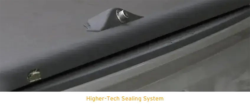 The more uniform and controlled the compression, the better the cover is sealed. Stowe’s unique sealing system features a fail-safe double-bulb design, where a secondary perimeter seal backs up the primary seal. “Sealing the seal” gives both the tonneau cover and toolbox a true weathertight seal, and the most waterproof protection obtainable. In fact, Stowe Cargo’s cover seal technology is comparable to what your vehicle manufacturer trusts to weatherproof your own pick-up’s doors.