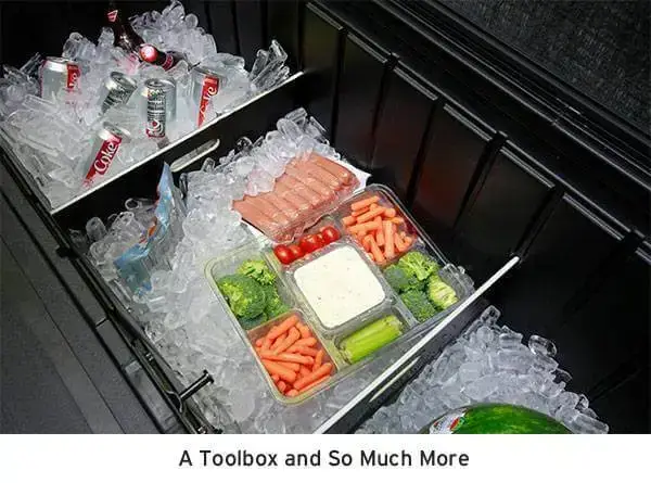 Yes, you can call it a “tool-box.” But it’s also a strongbox, cargo-box, big boy’s toy box, tacklebox, you name it. It’s a sleek, sophisticated, low-profile compartment with a generous 400-lb. capacity that’s tall enough for a five-gallon pail and long enough for a set of golf clubs. It’ll help you organize your pick up truck bed, has available dividers, and even makes a great ice cooler.