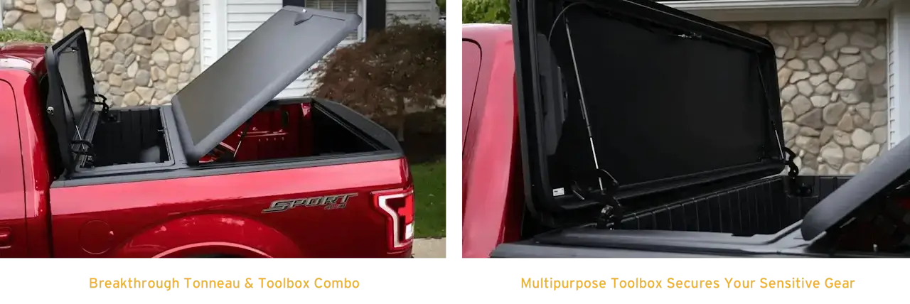 Unlike makeshift toolbox-plus-tonneau-cover mash-ups, our unique 2-in-1 toolbox-and-tonneau system is a single integrated design, with both tool box and tonneau cover truly weathertight and secure. Use them together, or easily remove the tonneau cover when you need to carry taller loads.